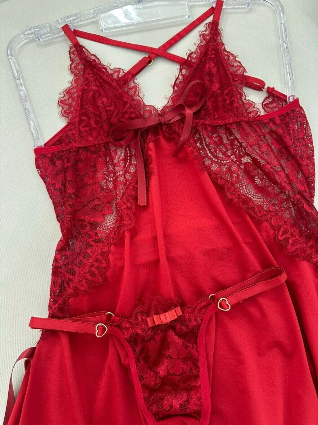 Para completar acompanha a calcinha com fio duplo em renda, que possui laterais reguláveis em formato de coração. Essa combinação perfeita garante conforto e um ajuste ideal, tornando suas noites ainda mais especiais. Invista na Camisola Laço e sinta-se confiante e linda!