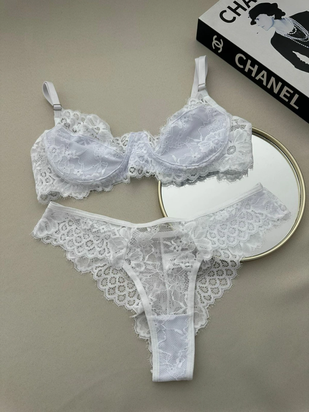 Conjunto confeccionado em renda.