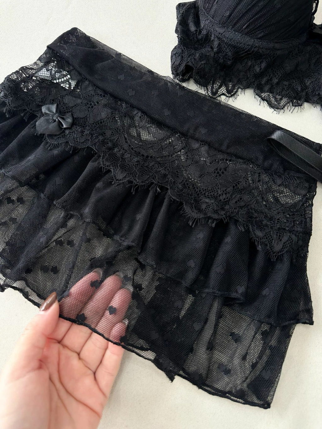 • Contém: 01 Calcinha, 01 Sutiã, 01 par de luvas, 01 saia.