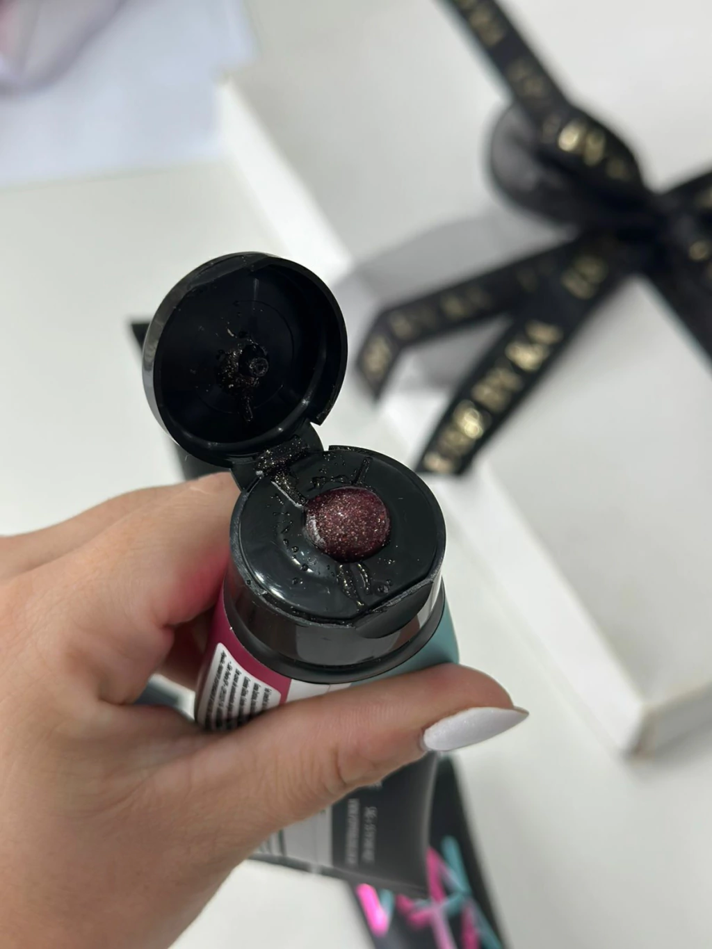 Ingredientes: Glicerina, Água, Espessante Goma Xantana, Aroma Idêntico ao Natural, Conservador Sorbato de potássio, Benzoato de sódio e Corantes: Vermelho II, Silver e Gold.